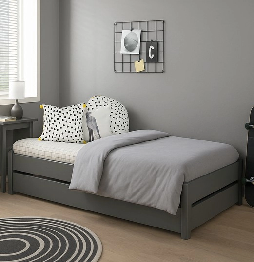 Pensé pour les petits espaces, il est livré avec un grand tiroir de rangement qui est suffisamment résistant pour accueillir, si nécessaire, un matelas de 11 cm d'épaisseur (maxi 75 kg)