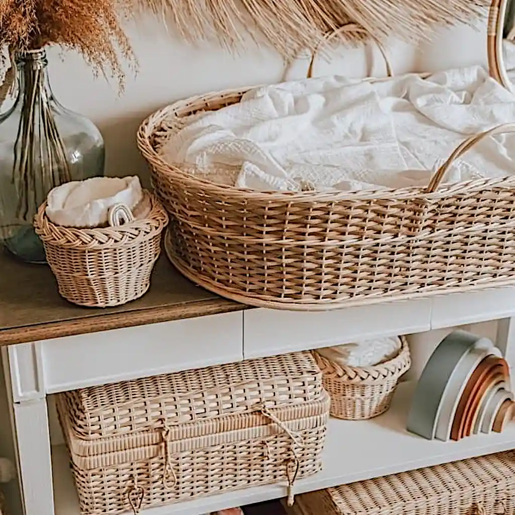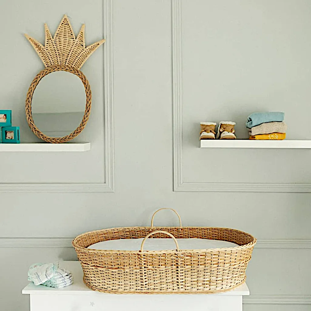 Ce panier en rotin offre une solution pour changer bébé dans de très confortables conditions.