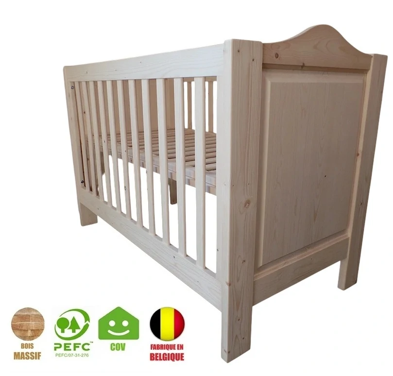 Ce lit bébé bois naturel est fabriqué avec du bois de sapin massif non traité provenant de forêts gérées durablement en scandinavie (Norvège ou Finlande car le bois est plus résistant et pousse plus lentement)