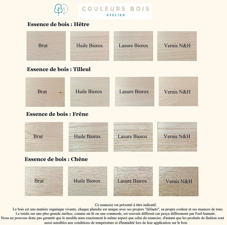 A noter également : les produits de finition incolores ne couvrent pas le veinage du bois et peuvent ne pas être totalement uniformes car absorbés différemment selon les endroits.