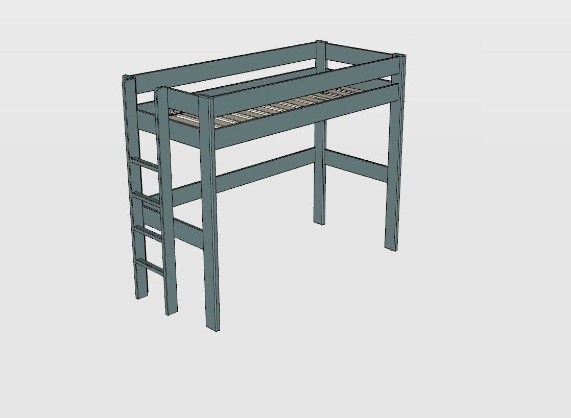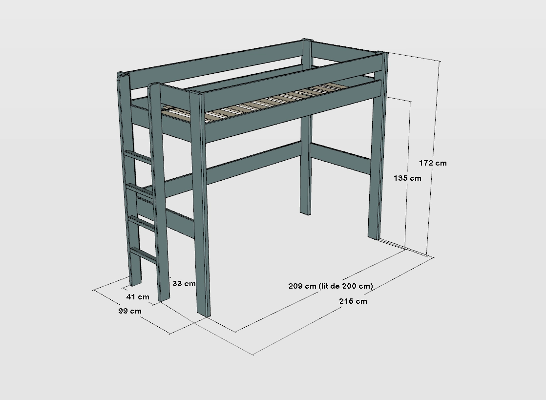 Ce lit mezzanine avec échelle latérale est principalement destiné aux enfants mais il peut très bien accueillir un ado ou un adulte.