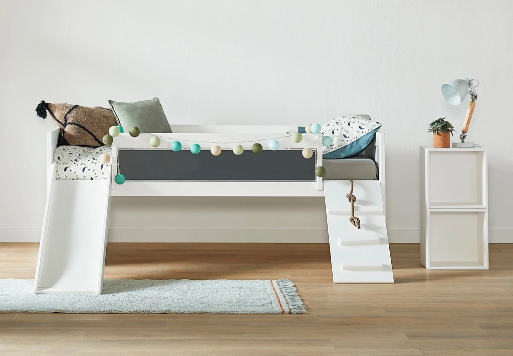 Voilà enfin un lit mi hauteur avec toboggan de haute qualité et ludique !