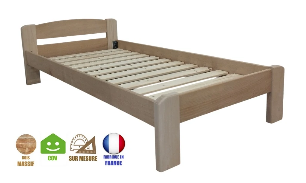 Vous pouvez aussi commander le lit 1 place 90x190 Emma directement protégé par un des différents produits incolores français de finition en option et qui ont pour but de protéger le bois brut des taches et de l'oxydation.