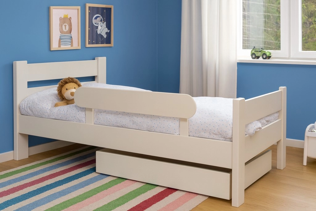 Faites le choix du confort durable et du design traditionnel avec le lit 1 place avec tiroir de rangement Maxime en bois massif. Parfait pour une chambre d’enfant dans sa version 90x150 comme sur le photo, d’adolescent ou une chambre d’amis, ce lit allie esthétique et robustesse.