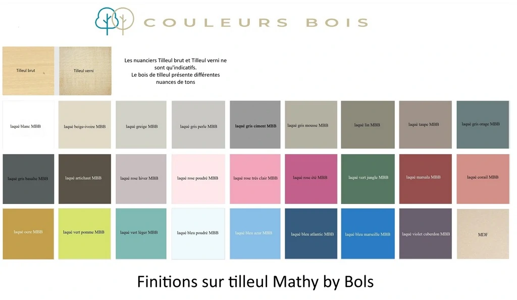Les laques à base d'eau de Mathy by Bols, appliquées dans leurs ateliers de l'autre côté de la frontière, dans les Ardennes belges sont au nombre de 26.