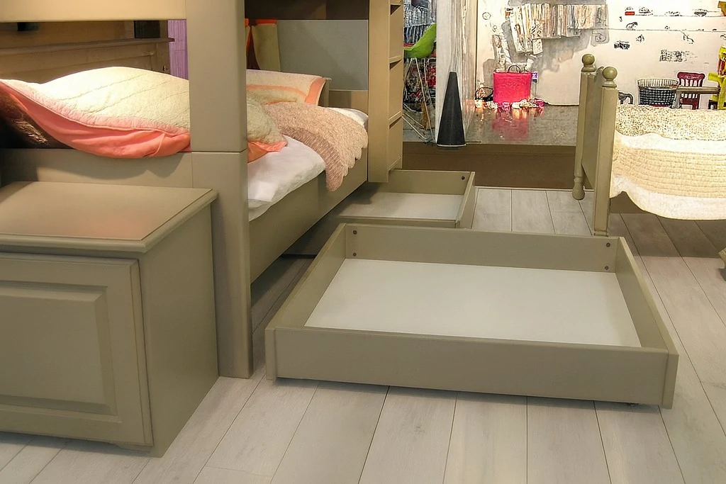 Il peut aussi arriver que la chambre d'un enfant ou d'un ado soit trop petite pour accueillir une armoire supplémentaire. Les tiroirs pourront être placés sous son lit et servir de zone de rangement sans prendre de place complémentaire dans la chambre.